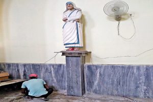रांची : मदर टेरेसा की प्रतिमा के सामने तेलेस्फोर पी टोप्पो ने अपने लिए बनवायी थी कब्र