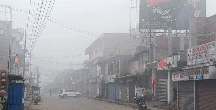 फ़ोटो:-29खलारी03:-केडी बाजार धुंध के कारण पसरा सन्नाटा. खलारी. खलारी-कोयलांचल में ठंड का प्रकोप चरम पर है. सोमवार की सुबह धुंध और कोहरे ने जनजीवन प्रभावित किया. धूप देर से निकली और सर्द हवाओं ने शाम तक लोगों को ठिठुरन में रखा. बाजारों में आवाजाही कम होने से सड़कों पर सन्नाटा पसरा रहा. खलारी कोयलांचल का मुख्य बाजार केडी भी ठंड व धुंध के कारण दस बजे तक सन्नाटा पसरा रहा. लोग शाम होते ही घरों में दुबकने को मजबूर हो गए हैं. रविवार को मौसम का अधिकतम तापमान 19.0 एवं न्यूनतम तापमान 8.0 डिग्री सेल्सियस रिकार्ड किया गया. ऐसे में लोग दिन-रात गर्म उनी कपड़े और आग की तपिश का सहारा ले रहे हैं.