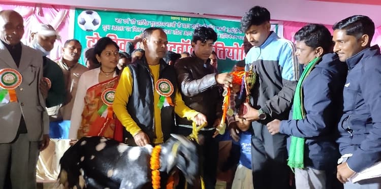 प्रतिनिधि, सिल्ली लोटा स्कूल मैदान में शहीद निर्मल महतो की जयंती के अवसर पर मिलन फुटबॉल क्लब लोटा की ओर से दो दिवसीय डबल खस्सी फुटबॉल टूर्नामेंट का फाइनल खेला गया. गुरुवार को नंदू भूमि स्पोर्टिंग एफसी तुलीन और जीएफसी हेरलाबेड़ा ब्राह्मणी गोड़ाडीह के बीच खेला गया. पेनाल्टी शूट आउट में जीएफसी हेरलाबेड़ा को 4-2 से हराकर नंदू भूमि स्पोर्टिंग फुटबॉल क्लब प्रतियोगिता का चैंपियन बना. मुख्य अतिथि सिल्ली विधायक अमित कुमार महतो थे. उन्होंने कहा कि फुटबॉल हमारे देश में लोकप्रिय खेलों में से एक है, जो शहरी क्षेत्र के साथ-साथ ग्रामीण क्षेत्र में खेला जाता है. विजेता व उप विजेता टीम को विधायक, जिप सदस्य लक्ष्मी कुमारी, झामुमो नेता अमित मुंडा उर्फ गाडाम, अखिल महतो आदि ने ट्राॅफी व खस्सी देकर सम्मानित किया. वहीं परमानंद महतो, गोकुल चंद्र महतो, अखिल महतो, दशरथ महतो, कार्तिक महतो, फलारी महतो, रवींद्रनाथ मुंडा, डॉ विवेक समेत अन्य अतिथियों ने प्रतियोगिता के बेहतर खिलाड़ी व सेमीफाइनल के उप विजेता टीमों को नगद राशि देकर सम्मानित किया. प्रतियोगिता में बेस्ट गोल गोलकीपर बेस्ट गोलकीपर हेरलाबेड़ा एफसी के मनोज महतो, बेस्ट खिलाड़ी नंदू भूमि तुलिन के लंबु महत को व मैन ऑफ द टूर्नामेंट बेस्ट का पुरस्कार तुलिन के अपु महतो को दिया गया. प्रतियोगिता में आसपास के 16 टीमें हिस्सा लिया. मुर्गा लड़ाई का भी आयोजन किया था. कार्यक्रम के सफल आयोजन में मिथुन चंद्र महतो, अरविंद महतो, भगीरथ महतो, राजेंद्र महतो, राजेंद्र महतो, विष्णु चरण महतो, विक्रम महतो, मनोहर महतो, दिलीप कुमार महतो, फरारी महतो, बिंदेश्वर महतो, भीम महतो, कार्तिक महतो, तृथनाथ महतो आदि मौजूद थे.