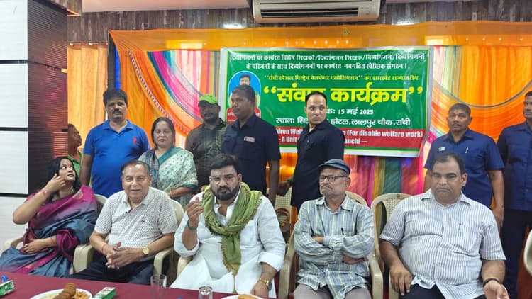रांची. स्पेशल चिल्ड्रेन वेलफेयर एसोसिएशन की ओर से राज्य भर के दिव्यांगजनों के साथ लालपुर स्थित सिटी पैलेस होटल में राज्यस्तरीय संवाद कार्यक्रम का आयोजन किया गया. मुख्य अतिथि झारखंड सरकार के मंत्री हफीजुल हसन अंसारी थे. उन्होंने कहा कि दिव्यांगजनों का मामला मेरी प्राथमिकता में है. पूर्व में हुई कैबिनेट की बैठक में भी मैंने दिव्यांगजनों का मामला उठाया था और उनकी पेंशन 2500 रुपये करने की बात रखी थी. विशिष्ट अतिथि के रूप में सीपीएम के राज्य सचिव कॉमरेड प्रकाश विप्लव सहित अन्य उपस्थित थे. संवाद कार्यक्रम का संचालन पॉवेल कुमार ने किया. लहू बोलेगा के संस्थापक नदीम खान ने कार्यक्रम के उद्देश्य पर प्रकाश डाला. धन्यवाद ज्ञापन निगार सुल्ताना ने किया. कार्यक्रम की अध्यक्षता डॉ अनुराधा वत्स ने की. कार्यक्रम में अतिथियों को सम्मानित किया गया. इस अवसर पर रोहन, अब्दुल्ला, अर्चना कुमारी, जैद रजा, सुनील लकड़ा, अनिल, मनीष, दिव्यांग शिक्षक सुनीता कुमारी, प्रशांत कुमार चौबे, राजकुमार सहित अन्य उपस्थित थे. इधर, रांची स्पेशल चिल्ड्रेन वेलफेयर एसोसिएशन का गठन किया गया. इसमें पॉवेल कुमार को संयोजक बनाया गया. वहीं, सह संयोजक फहीम, प्रवक्ता शिक्षिका निगार सुल्ताना बनाये गये. कार्यक्रम में कई लोग उपस्थित थे.
