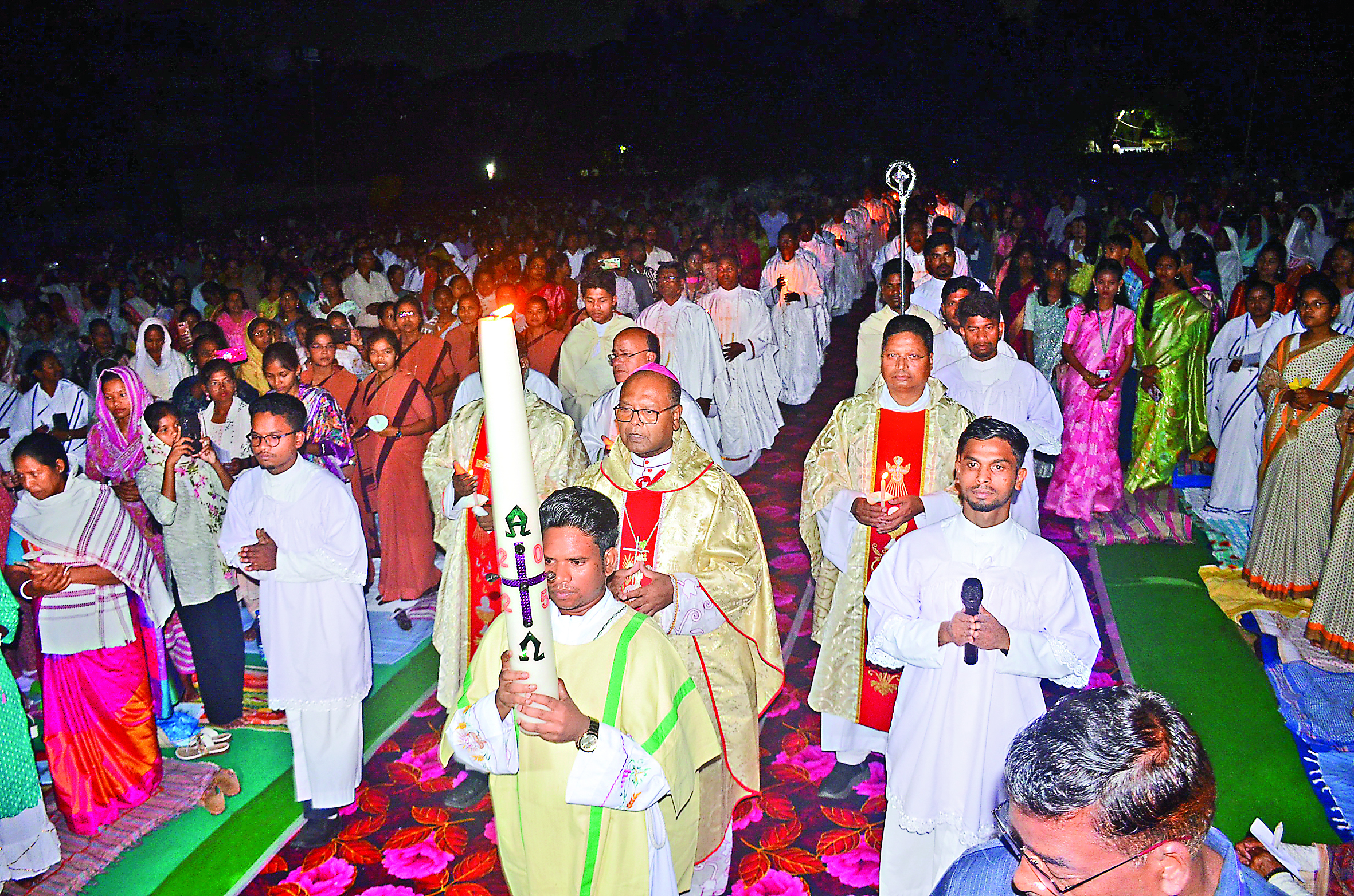 रांची. पुण्य शनिवार के अवसर पर लोयला मैदान में पास्का जागरण की धर्मविधि संपन्न हुई. इस धर्मविधि के मुख्य अनुष्ठक आर्चबिशप विंसेंट आइंद थे जबकि उपदेश सोसाइटी ऑफ जीसस के प्रोविंशियल फादर अजीत खेस ने दिया. इस धर्मविधि के दौरान नयी आग से पास्का मोमबत्ती को प्रज्जवलित करना था. आर्चबिशप ने पास्का मोमबत्ती जलायी. उससे बाकी पुरोहितों व मैदान में उपस्थित विश्वासियों ने भी अपनी-अपनी मोमबत्तियों को प्रज्जवलित किया. इस दौरान लोयला मैदान हजारों मोमबत्तियों की झिलमिलाती ज्योति से रोशन हो उठा.