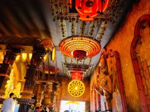 ओसीसी क्लब दुर्गा पूजा समिति. तीन देवताओं की एकीकृत शक्ति का प्रदर्शन, संरचना के लिए 12 टन लोहे का उपयोग