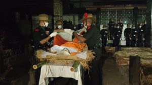 सारे विधि विधान समाप्त होने के पश्चात सेना के जवानों ने पुनः उनको तिरंगे में लिपटा कर गार्ड आॅफ आॅनर कि सलामी के साथ उन्हें रांची के हरमू स्थित मुक्ति धाम ले गये वहाँ पर सेना के जवानों ने पुनः अपने विधी विधानों के साथ फायरिंग कर उनको सलामी दी.