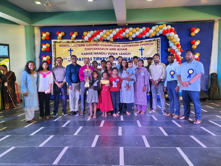 एनडब्लूजीइएल चर्च कांके मंडली युवा संघ के तत्वावधान में रविवार को आयोजित स्व पतरस तिर्की मेमोरियल ट्राॅफी ऑटोनोमस का आयोजन किया गया. जिसमें एनडब्लूजीइएल क्लीसिया के छह मंडलियां कांके, रांची एचक्यू, हड़सेर, शालीमार, हुलहुंडू डिबडीह ने हिस्सा लिया. कार्यक्रम में सांस्कृतिक नाच, युगल संगीत, फैंसी ड्रेस, भजन होड़, एक्सन सांग, मॉडर्न डांस आदि प्रतियोगिता आयोजित की गयी. विजेता प्रतिभागियों को पुरस्कार देकर सम्मानित किया गया. वहीं कार्यक्रम में कांके मंडली संघ ने जेपीएससी सेकेंड टाॅपर अभय कुजूर को भी सम्मानित किया गया. मुख्य अतिथि चर्च के सेंट्रल डायोसिस बिशप रेव्ह निस्तार कुजूर, चेयरमैन रेव्ह नयनिरग्ल लकड़ा, प्रमोद टोप्पो, विमल जाॅन खेस ने विजेता प्रतिभागियों को सम्मानित किया. मौके पर नवल कुजूर, सुमित तिर्की, सोनाली तिग्गा, अचला रागिनी, श्रेया कुजूर आदि मौजूद थे.स्व पतरस तिर्की मेमोरियल ट्राॅफी प्रतियोगिता का आयोजन