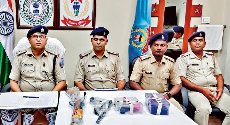 वरीय संवाददाता, रांची़ बेड़ो थाना पुलिस की टीम ने चनगनी स्कूल मैदान में छापेमारी कर अपराध की योजना बनाते दो अपराधियों को गिरफ्तार किया है. गिरफ्तार अपराधियों में गिरोह के सरगना बेड़ो के टिकरा टोली निवासी मंसूर अंसारी उर्फ आर्यन उर्फ लंगड़ा और लक्की उरांव के नाम शामिल हैं. इनकी निशानदेही पर पुलिस ने नगड़ी टिकरा टोली में शहबान अंसारी के घर में छापेमारी कर हथियार और गोली बरामद करने के साथ ही शहबान अंसारी को भी गिरफ्तार किया है. बरामद हथियार में एक राइफल (बैरल में एसएलआर लिखा हुआ है), एक देशी कारबाइन, पांच मिस फायर गोली और एक गोली का खोखा बरामद हुआ है. यह जानकारी रविवार की शाम अपने कार्यालय में आयोजित संवाददाता सम्मेलन में ग्रामीण एसपी सुमित कुमार अग्रवाल ने दी. गुप्त सूचना पर पुलिस ने छापेमारी कर अपराधियों को किया गिरफ्तार : ग्रामीण एसपी ने बताया कि विधानसभा चुनाव को लेकर वारंटी और अपराधियों की गिरफ्तारी के लिए छापेमारी की जा रही है. देशी राइफल आर्यन के दोस्त लल्लू उरांव के घर से और शहबान अंसारी के घर से देशी कारबाइन और गोली बरामद किया गया है. इधर, आरोपियों की गिरफ्तारी को लेकर बेड़ो थाना में दर्ज केस के अनुसार बेड़ो थाना प्रभारी को गुप्त सूचना मिली थी कि चनगनी स्कूल मैदान में कुख्यात अपराधी मंसूर उर्फ आर्यन अपने साथी अपराधियों के साथ बैठकर शराब पी रहा है. साथ ही वह किसी बड़ी आपराधिक घटना को अंजाम देने की योजना बना रहा है. पुलिस को यह भी सूचना थी कि वह बेड़ो के कुछ व्यापारियों से लेवी मांगने की योजना बना रहा है. लेवी नहीं देने पर हत्या भी की जा सकती है. आर्यन पूर्व में हत्या, लूट, डकैती, फिरौती के लिए अपहरण सहित अन्य घटना को अंजाम दे चुका है. सूचना मिलने के बाद पुलिस ने चनगनी स्कूल मैदान में छापेमारी की. वहां पहुंचने पर शराब पीने के लिए बैठे दो लाेग पुलिस को देखकर भागने लगे, लेकिन पुलिस ने खदेड़कर दोनों को पकड़ लिया. एक आरोपी ने अपना नाम मंसूर अंसारी और दूसरे ने लक्की उरांव बताया. कड़ाई से पूछताछ करने पर दोनों ने बताया कि यहां गिरोह के कुछ अन्य सदस्य भी आने वाले थे. व्यापारियों से रंगदारी मांगने की योजना थी अपराधियों की : अपराधियों की योजना बेड़ो के व्यापारियों से रंगदारी मांगने और रंगदारी नहीं देने पर हत्या करने की थी. घटना को अंजाम देने के लिए आरोपियों ने एक देशी राइफल का भी जुगाड़ किया था. यह राइफल गांव के ही लालू महती के पास है. इसके साथ ही दो देशी पिस्टल लक्ष्मण किस्पोट्टा और एक कारबाइन शहबान अंसारी को रखने के लिए दिया गया था. दोनों आरोपियों की निशानदेही पर पुलिस ने पहले लालू महली के घर में छापेमारी कर बक्सा में छिपाकर रखा गया देशी राइफल बरामद किया. फिर लक्ष्मण किस्पोट्टा के घर में छ