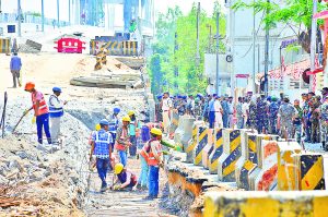 Ranchi News : सिरमटोली में कड़ी सुरक्षा में फ्लाइओवर के रैंप का निर्माण शुरू, दिन-रात चल रहा काम