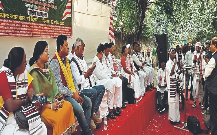 राष्ट्रीय आदिवासी समाज सरना धर्म रक्षा अभियान व दिल्ली सरना समाज के बैनर तले विभिन्न सामाजिक- सांस्कृतिक संगठनों ने सरना धर्म कोड की मांग को लेकर दिल्ली के जंतर मंतर में महाधरना दिया. इसकी अध्यक्षता करते हुए धर्मगुरु बंधन तिग्गा ने कहा कि आदिवासियों के सरना धर्म पर जिस तरह के अतिक्रमण और हमले हुए हैं, वह मानव जीवन व मानवता के लिए अभिशाप है. देश के आदिवासियों को अपनी रक्षा और धार्मिक अस्तित्व के लिए सचेत व गंभीर होना होगा.