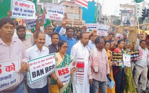 मणिपुर घटना के विरोध में भारतीय कम्युनिस्ट पार्टी ने भी प्रदर्शन किया. भाकपा कार्यालय से जुलूस की शक्ल में अलबर्ट एक्का चौक तक विरोध प्रदर्शन किया. इस मौके पर राज्य सचिव महेंद्र पाठक ने कहा कि मणिपुर की घटना ने देश को शर्मसार किया है. जिस तरह वहां पर महिलाओं को निर्वस्त्र कर घूमाया जा रहा है. महिलाओं के साथ बदसलूकी की जा रही है. इससे ऐसा लगता है कि देश के नरेंद्र मोदी की सरकार देश के सांप्रदायिक उन्माद को फैलाने के लिए बेताब है. केंद्र सरकार किस तरह से लोगों को बांट कर राजनीति रोटी से सेंक रही है. मणिपुर जल रहा है और सरकार मस्त है. वहीं, जिला सचिव अजय कुमार सिंह ने कहा कि लगातार आदिवासियों को बीजेपी की सरकार अपमानित कर रही है. मणिपुर की सरकार को बर्खास्त कर राष्ट्रपति शासन लगाने की माग की गयी. इस मौके पर झामुमो नेता जितेंद्र सिंह, धर्मवीर सिंह, मनोज ठाकुर, अमित कुमार, अनिरुद्ध कुमार, छुमु उरांव, सुशांतो मुखर्जी, सुरेंद्र कुमार दीक्षित, नीरज कुमार सिंह, शांतनु कुमार, कृष्ण कुमार वर्मा, शौकत अंसारी, श्यामल चक्रवर्ती, मनोज ठाकुर, अनिरुद्ध पाठक, सोनू कुमार सहित कई लोग मौजूद थे.