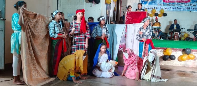 सिल्ली. आदिवासी रेलवे परिवार मुरी शाखा रांची मंडल के तत्वावधान में शुक्रवार को मुरी रेलवे इंस्टीट्यूट परिसर में क्रिसमस गैदरिंग का आयोजन किया गया. मुरी के तुलसी म्यूजिकल ग्रुप ने आधुनिक-नागपुरी क्रिसमस गीत-संगीत से सांस्कृतिक कार्यक्रम की शुरुआत की. मुरी चर्च के फादर, उर्सुलाइन स्कूल से सिस्टर ने मनमोहक क्रिसमस गीत की प्रस्तुति की. स्कूली बच्चियों ने पारंपरिक रीति-रिवाज, वेश-भूषा के साथ नुक्कड़ नाटक कर माता मरियम के जीवन चरित्र का मंचन किया. बच्चों ने प्रभु यीशु के जन्म और संघर्ष को कथा के साथ नाटकीय प्रस्तुति की. कार्यक्रम का नेतृत्व एसीएमएस डॉ जे कच्छप ने किया. कार्यक्रम में उर्सुलाइन स्कूल की प्रिंसिपल सरिता बोदरा, सिस्टर ज्योति, मतला खलखो, आरपीएफ और जीआरपी प्रभारी, मुरी स्टेशन प्रबंधक, यार्ड मास्टर, निरंजन बाघवार, विष्णु हेमरोम, सुबोध मिंज, राजू कोया, शिबू पहान, अरुण भगत, आर खेस, एके समुद्रा, बिनोद, छोटू, सुनील परवार, पवन हेमरोम, अरुण बारला, सुरेश, रंजीत, वास्तु अशोक सुरीन, सनातन गोंझू, कुसुम मुंडा आदि मौजूद थे.