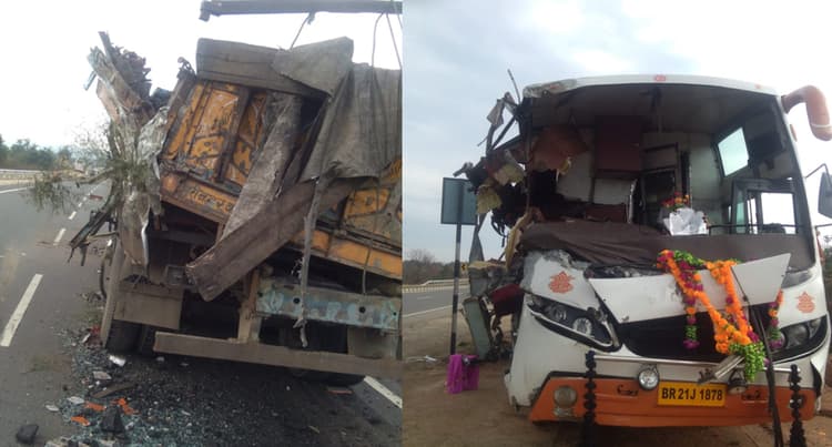 दूसरे मृतक की पहचान अभी तक नहीं हो सकी है. एक दर्जन से ज्यादा लोग घायल हुए हैं. बस बिहारशरीफ से टाटा जा रही थी. टक्कर इतनी जबर्दस्त थी कि बस और ट्रक बुरी तरह क्षतिग्रस्त हो गये. दुर्घटना में मृत बच्ची कशिश के पांच परिजन शामिल हैं. इनके नाम सपना दास साहू, रूही साहू, आदित्य साहू और अंश साहू शामिल हैं.