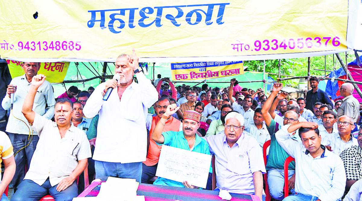 राज्य के वित्त रहित स्कूल स्कूल-कॉलेज के शिक्षकों ने शिक्षक दिवस पर शुक्रवार को राजभवन के समक्ष धरना दिया. शिक्षक स्कूल व कॉलेजों की अनुदान राशि में 75 फीसदी बढ़ोतरी की मांग कर रहे हैं. झारखंड वित्त रहित शिक्षक संयुक्त संघर्ष मोर्चा के रघुनाथ सिंह ने कहा कि सरकार इसको लेकर गंभीर नहीं है. अनुदान बढ़ोतरी की प्रक्रिया काफी दिनों से चल रही है, पर इसे अब तक कैबिनेट से स्वीकृति नहीं मिली है. उन्होंने कहा कि अनुदान बढ़ोतरी को लेकर राशि भी स्वीकृत कर दी गयी है. राज्य के संबद्धता प्राप्त डिग्री कॉलेजों के अनुदान में वर्ष 2023 में ही बढ़ोतरी कर दी गयी. कॉलेजों को इसके अनुरूप अनुदान भी दिया जा रहा है. लेकिन, हाइस्कूल व इंटर कॉलेजों के अनुदान में बढ़ोतरी नहीं हुई है. धरना के बाद मोर्चा ने राज्यपाल को ज्ञापन सौंपा. धरना देनेवालों में हरिहर प्रसाद कुशवाहा, अरविंद सिंह, अनिल तिवारी, कुंदन कुमार सिंह, देवनाथ सिंह, संजय कुमार, चंद्रेश्वर पाठक, मनीष कुमार, अरविंद सिंह, लोकनाथ दास, विनय कुमार प्रसाद, तेज कुमार लिंडा, रोशन केरकेट्टा, उपेंद्र कुमार राम समेत अन्य शिक्षक शामिल थे.सीएम आवास का करेंगे घेराव