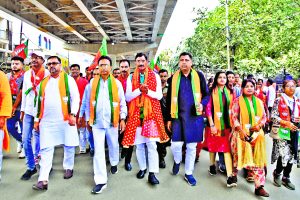 ओटीसी मैदान से न्यू मार्केट चौक तक पदयात्रा कर लोगों से प्रधानमंत्री का स्वागत करने की अपील की