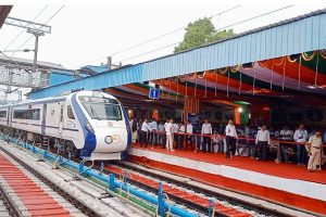 सेमी हाई स्पीड ट्रेन ‘वंदे भारत’ को मंगलवार सुबह 10:51 बजे प्रधानमंत्री नरेंद्र मोदी ने ऑनलाइन हरी झंडी दिखाकर बिहार व झारखंड के यात्रियों को समर्पित किया. आज से यह ट्रेन नियमित तौर पर चलेगी. इससे पहले वंदे भारत के उद्घाटन के मौके पर रांची रेलवे स्टेशन में मुख्य अतिथि के तौर पर राज्यपाल सीपी राधाकृष्णन, विशिष्ट अतिथि केंद्रीय राज्य शिक्षा मंत्री अन्नपूर्णा देवी सहित झारखंड के कई सांसद मौजूद थे.
