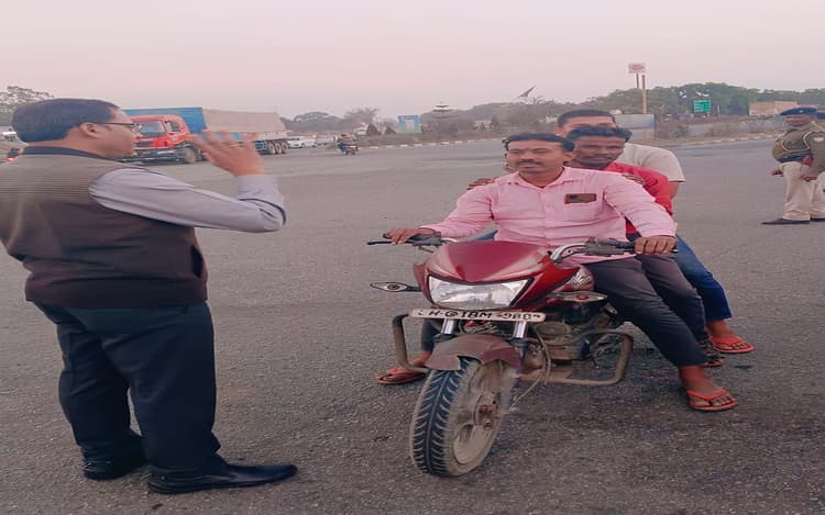 बिना हेलमेट ट्रिपल राइडिंग कर रहे थे छात्र, लगा जुर्माना