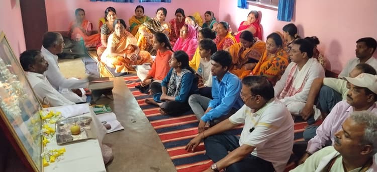 सिल्ली. विहंगम योग संत समाज सिल्ली के तत्वावधान में गुरु भाई राजेन्द्र प्रसाद साय के आवास परिसर में विहंगम योग सत्संग सह ध्वजारोहण कार्यक्रम का आयोजन किया गया. कार्यक्रम में रांची के संत समाज उपदेष्ठा एवं प्रचारक मनोज कुमार सिंह, संत समाज के बोकारो जिला संयोजक जीव लाल महतो, रांची जिला संयोजक प्रमेंद्र चौधरी एवं पतराहातु के बासंती दुबे, एवं अन्य गुरु बहनें शामिल हुए. कार्यक्रम की शुरुआत अनन्त सदगुरू सदाफलदेव, सदगुरु आचार्य धर्मचंद्रदेव एवं सदगुरु स्वतंत्रतदेव के चित्र पर माल्यार्पण एवं दीप प्रज्वलित कर कार्यक्रम का शुभारंभ किया गया. इस अवसर पर सद्गुरु सदाफलदेव जी महाराज द्वारा रचित आध्यात्मिक ग्रंथ ””स्वर्वेद”” का पाठ और भजन-कीर्तन का आयोजन किया गया, जिससे वातावरण भक्तिमय हो गया. इस मौके पर मनोज कुमार सिंह, प्रमेंद्र चौधरी, एवं जीव लाल महतो ने आध्यात्मिक जागृति, मानसिक शांति और सामाजिक एकता के उद्देश्य विस्तृत चर्चा की. इस दौरान क्रियात्मक साधना पद्धति के बारे में अभ्यास कराया. कार्यक्रम का संचालन आत्माराम महतो ने किया. मौके पर बसंती देवी एवं साथी गुरु बहनों ने भजन कीर्तन की प्रस्तुति दी. कार्यक्रम में पवित्र विहंगम योग ””अ”” अंकित ध्वज का ध्वजारोहण किया गया. इस दौरान भंडारा का आयोजन किया गया. वहीं आरती एवं प्रश्राद वितरण के साथ कार्यक्रम का समापन किया गया. इस मौके पर गणेश साहु, उमा साहू, विजय भाद्र, भेंगराज प्रसाद, पूर्णिमा सिंह देव, अवनी साहू, तिलोत्तमा साय, सुनीतासह देव समेत गुरु भाई एक गुरु बहनें उपस्थित थे.