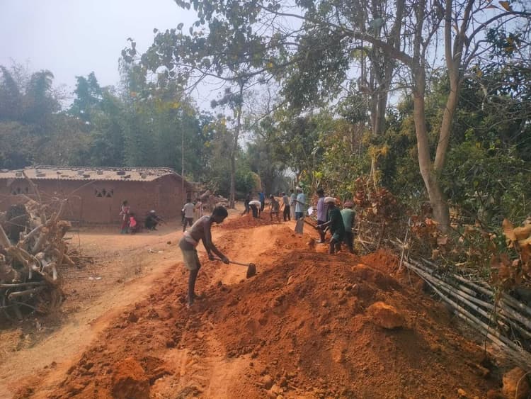 ग्रामीणों ने श्रमदान से बनायी सड़क