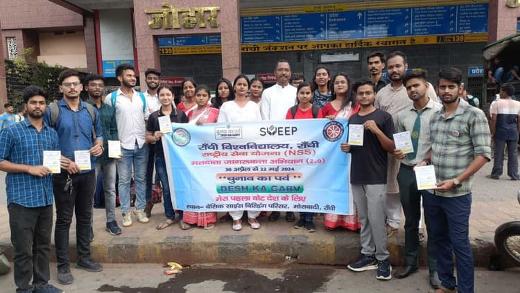 रांची (वरीय संवाददाता). रांची विश्वविद्यालय के एनएसएस एवं स्वीप के तत्वावधान में बिरसा मुंडा एयरपोर्ट और रेलवे स्टेशन परिसर में रविवार को मतदाता जागरूकता अभियान चलाया गया. यह कार्यक्रम रांची विवि के एनएसएस के कार्यक्रम समन्वयक डॉ ब्रजेश कुमार, डॉ कुमुद कला मेहता, डॉ कुमारी उर्वशी, डॉ कुमारी भारती सिंह, डॉ किशोर सुरीन की देखरेख में चलाया गया. इस अवसर पर डॉ ब्रजेश कुमार ने कहा कि एनएसएस के मतदाता जागरूकता अभियान की प्रशंसा सभी लोग कर रहे हैं. उन्होंने कहा कि आम मतदाताओं को जागरूक करना बहुत बड़ा कार्य है एवं सभी के प्रयास से मतदाता प्रतिशत में वृद्धि होती है तो एक संतुष्टि का भाव प्रदर्शित होगा.