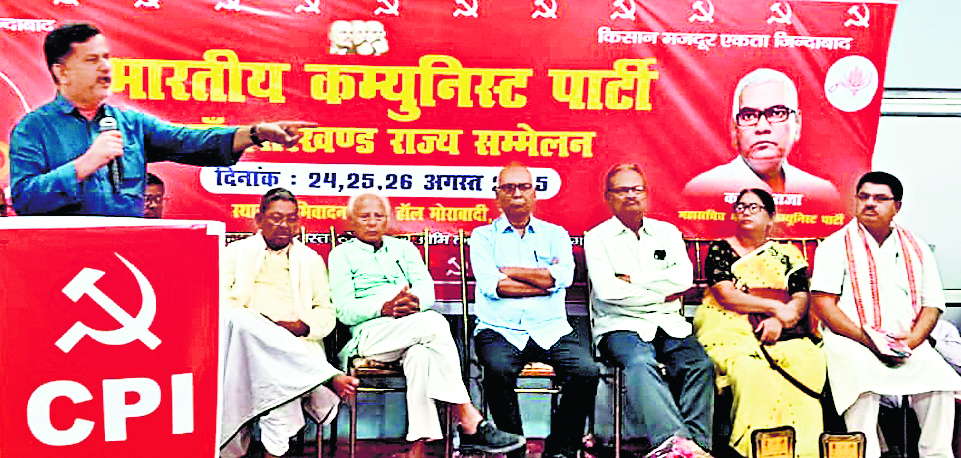 भारतीय कम्युनिस्ट पार्टी (भाकपा) झारखंड राज्य परिषद का आठवां राज्य सम्मेलन राजधानी रांची में आयोजित किया गया है. 24 से 26 अगस्त तक चलने वाले इस सम्मेलन के पहले दिन खुला सत्र का आयोजन किया गया. इसमें राष्ट्रीय स्तर के साथ ही राज्य के ज्वलंत मुद्दों पर विस्तार से चर्चा की गयी. भाकपा नेताओं ने मजदूर-किसानों पर हो रहे हमलों के खिलाफ एकजुट होने पर जोर दिया. इस दौरान खेती-किसानी, समाप्त होते रोजगार, सांप्रदायिक राजनीति, श्रमिक अधिकार व कॉरपोरेट के हक में लेबर कोड में 44 श्रम कानून को बदले जाने, झारखंड के अंदर खनिज संपदा पर अधिकार और पलायन के साथ जल, जंगल और जमीन पर विस्तार से चर्चा की गयी.रैली निकाली गयी