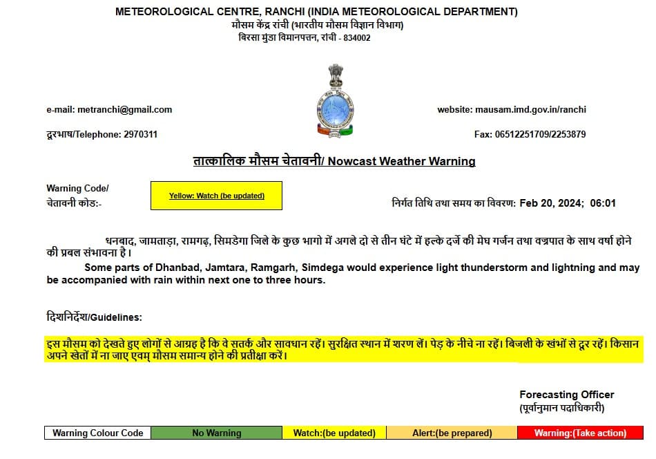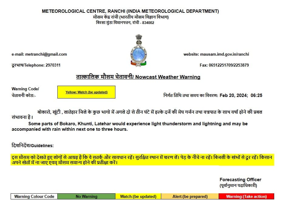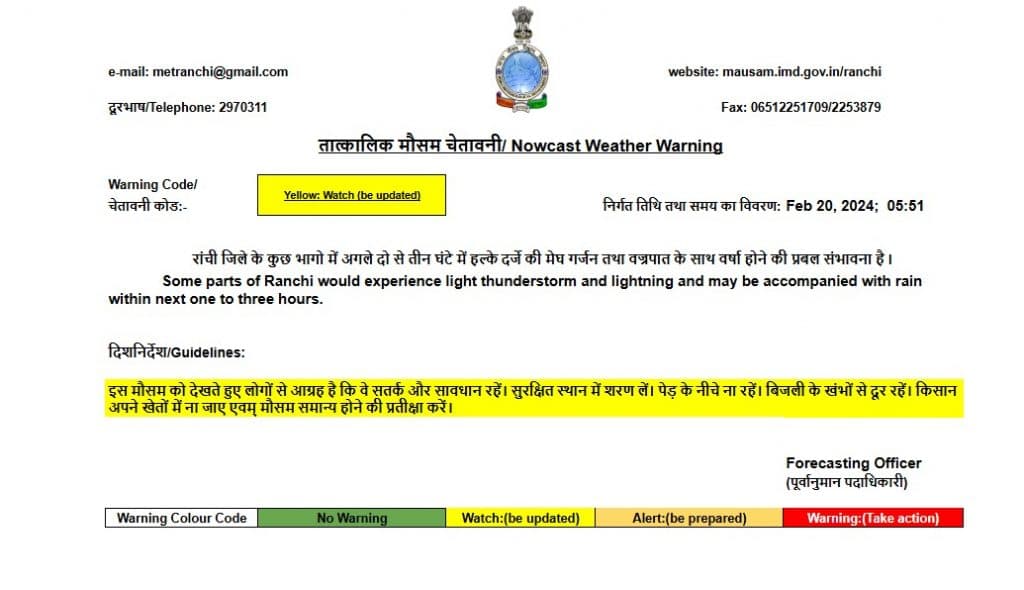 ये भी पढ़ें: Weather Alert: झारखंड में पश्चिमी विक्षोभ का असर, बारिश और ओलावृष्टि के साथ चलेंगी तेज हवाएं, IMD का ऑरेंज अलर्ट