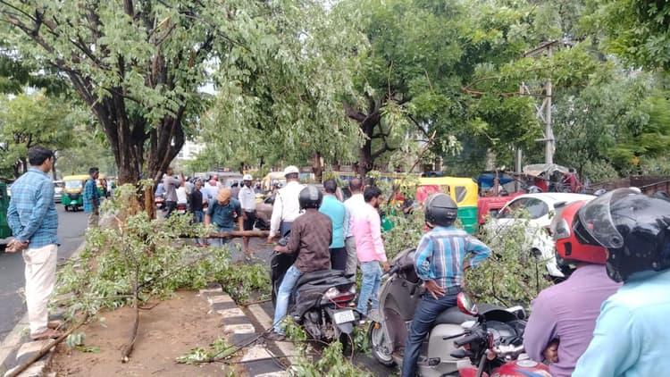 तेज आंधी-तूफान में पेड़ गिरने से सड़क जाम