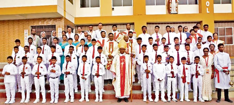 चर्च में व्हाइट संडे, 96 बच्चों ने लिया परम प्रसाद
