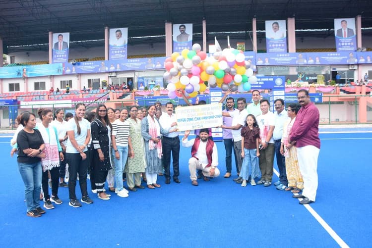 रांची. हॉकी इंडिया और हॉकी झारखंड के संयुक्त तत्वावधान में मरांग गोमके जयपाल सिंह मुंडा एस्ट्रोटर्फ हॉकी स्टेडियम में एक से सात सितंबर तक पहली हॉकी इंडिया जूनियर महिला और सब जूनियर पुरुष इंटर जोन चैंपियनशिप का उदघाटन रविवार को मुख्य अतिथि खेल विभाग के संयुक्त सचिव धमेंद्र दीक्षित के द्वारा किया गया. इसमें द्रोणाचार्य और ध्यानचंद अवार्डी सहित कई वर्तमान व पूर्व अंतरराष्ट्रीय हॉकी खिलाड़ी मौजूद थे. जिसमें ध्यानचंद अवार्डी सुमराय टेटे, चिंगालिंगसाना सिंह, ओलिंपियन असुंता लकड़ा, अंतरराष्ट्रीय खिलाड़ी संघाइ चानू, निक्की प्रधान, सलीमा टेटे, योगिता बाली, दीपिका सोरेंग, ब्यूटी डुंगडुंग, डीएसओ शिवेंद्र कुमार, जेओए कोषाध्यक्ष शिवेंद्र दूबे, हॉकी झारखंड के सीइओ रजनीश कुमार सहित अन्य मौजूद थे.