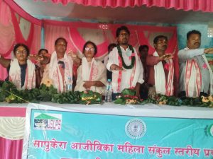 प्रखंड के महिला प्रशिक्षण भवन में सापूकेरा महिला कलस्टर की वार्षिक बैठक हुई. जिसमें सालभर के आय-व्यय का लेखा-जोखा पेश किया गया. महिलाओं ने मुख्य अतिथि मुखिया सविता उरांव, विशिष्ट अतिथि कांग्रेस के प्रखंड अध्यक्ष जयंत बारला व अन्य लोगों का पत्ती की टोपी व अंगवस्त्र भेंट कर स्वागत किया. मुखिया ने कहा कि स्वयं सहायता समूह वर्तमान में बरगद बन चुका है. समूह की महिलाओं को जरूरत से कम ब्याज पर ऋण मुहैया कराया जाता है. समूह का बैंक 24 घंटे खुला रहता है. जिसका लाभ समूह की महिलाएं उठा रही हैं. जयंत बरला ने कहा कि महिलाएं समूह में जेएसएलपीएस से जुड़कर रोजगार कर रही हैं. उन्होंने मुख्यमंत्री ट्रैक्टर अनुदान योजना की जानकारी दी. 29 अगस्त को दाड़ी पंचायत भवन में महिला सखियों के बीच झारखंड ग्रामीण बैंक और भारतीय स्टेट बैंक लापुंग की कार्यशाला की जानकारी दी गयी. बैठक में सभी महिलाओं ने बेटा-बेटी एक समान, दो बच्चे के बाद परिवार नियोजन को अपनाने की शपथ ली. संचालन स्वाति भेंगरा ने किया. मौके पर सुदामा महली, नसीम आलम, गीता देवी, बीपीएम सविता संगा, ग्रामीण बैंक के मैनेजर आशीष कुमार, पुष्पा कच्छप, अंबिका देवी, सीमा सिंह, सुशीला कुमारी, बसंती देवी, विश्वासी नाग, पूर्णिमा देवी व महिलाएं उपस्थित थे.आजीविका महिला समूह सापुकेरा संकुल का वार्षिक एजीएमB