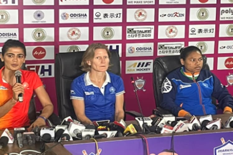 झारखंड में वीमेंस एशियन हॉकी चैंपियंस ट्रॉफी का शुक्रवार से आगाज हो जाएगा. इसे लेकर सभी 6 टीमें पहले ही रांची आ चुकी है. मैच शुरू होने से पहले भारतीय टीम ने अपनी तैयारी को लेकर प्रेस कॉन्फ्रेंस की. प्रेस वार्ता को कप्तान सविता पुनिया, कोच जेनेके शोपमैन, उप-कप्तान ग्रेस एक्का ने संबोधित किया. इस दौरान भारतीय हॉकी टीम की कप्तान ने पत्रकारों के सवालों का जवाब देते हुए कहा कि इंडिया में हम लंबे समय बाद एक बड़ा टूर्नामेंट खेलने जा रहे हैं. जो हमें सुखद अनुभव दे रहा है.
