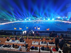 करीब एक घंटे तक चले सांस्कृतिक कार्यक्रम के दौरान स्टेडियम में बीम लाइट शो दिखाया गया. लाइट शो महिला सशक्तीकरण के रंग और हॉकी में महिलाओं की बढ़ती भागीदारी को समर्पित रहा. बीम लाइट के जरिये भारत के तिरंगे पर आधारित शो दिखाया गया. सुखविंदर सिंह का गाना ””””कम ऑन इंडिया… खेल से माथा ऊंचा रखना…”””” जैसे-जैसे आगे बढ़ा बीम लाइट का कलेवर बदलता गया. स्टेडियम में लगी दो एलइडी स्क्रीन पर 1925 में शुरू हुई हॉकी इंडिया पर आधारित ””””जर्नी ऑफ इंडियन हॉकी”””” दिखायी गयी. इसमें दर्शकों को भारतीय हॉकी के इतिहास, 1928 में मिले छह ओलिंपिक मेडल और अब तक मिले 30 ओलिंपिक मेडल की कहानी साझा की गयी.राधा श्रीवास्तव की प्रस्तुति ने दर्शकों का जोश जगाया