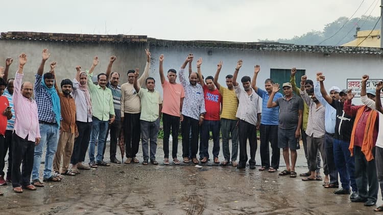 फोटो:- 09 खलारी 05:- बैठक में शामिल असंगठित मजदूर व मजदूर नेता. खलारी. सीसीएल एनके एरिया में 13 और 14 जुलाई को होनेवाली असंगठित मजदूरों की दो दिवसीय हड़ताल को लेकर बुधवार को बैठक की गयी. बैठक में उपस्थित मजदूरों ने एकजुटता दिखाते हुए कहा कि यह हड़ताल मजदूरों के अधिकार और सम्मान की लड़ाई है. इसे ऐतिहासिक बनाया जायेगा. बैठक में उपस्थित सभी मजदूरों ने आउटसोर्सिंग कंपनियों और सीसीएल प्रबंधन के समक्ष अपनी प्रमुख मांगों को दोहराया. जिनमें स्थानीय मजदूरों को प्राथमिकता के आधार पर रोजगार देने, सीएमपीएफ की राशि का तत्काल भुगतान आदि मांगें प्रमुख हैं. मजदूरों ने स्पष्ट कहा कि हड़ताल के दिन एक भी कोयला लदा रैक नहीं निकलने दिया जाएगा. उनका यह भी कहना था कि असंगठित मजदूर लंबे समय से शोषण का शिकार हैं और अब वे अपने अधिकारों को लेकर किसी भी हद तक जाने को तैयार हैं. बैठक में मजदूर नेता अब्दुल्ला अंसारी के अलावा अमजद खान, अशोक सिंह, कृष्णा सिंह, जसीम अंसारी, उपेन्द्र ठाकुर, संदीप कुमार, सिलदेव कुमार, राजीव तूरी, बबलू अंसारी, इरशाद खान, राजू तूरी, मोहन एक्का, महमूद अंसारी, दिलीप साव, वेदप्रकाश पांडेय, आशिक अंसारी, जगमोहन भगत, संतोष सिन्हा, उदय सिंह, प्रवीण सिंह, फारूख अंसारी व जयदीप कुमार सहित अन्य असंगठित मजदूर उपस्थित थे.