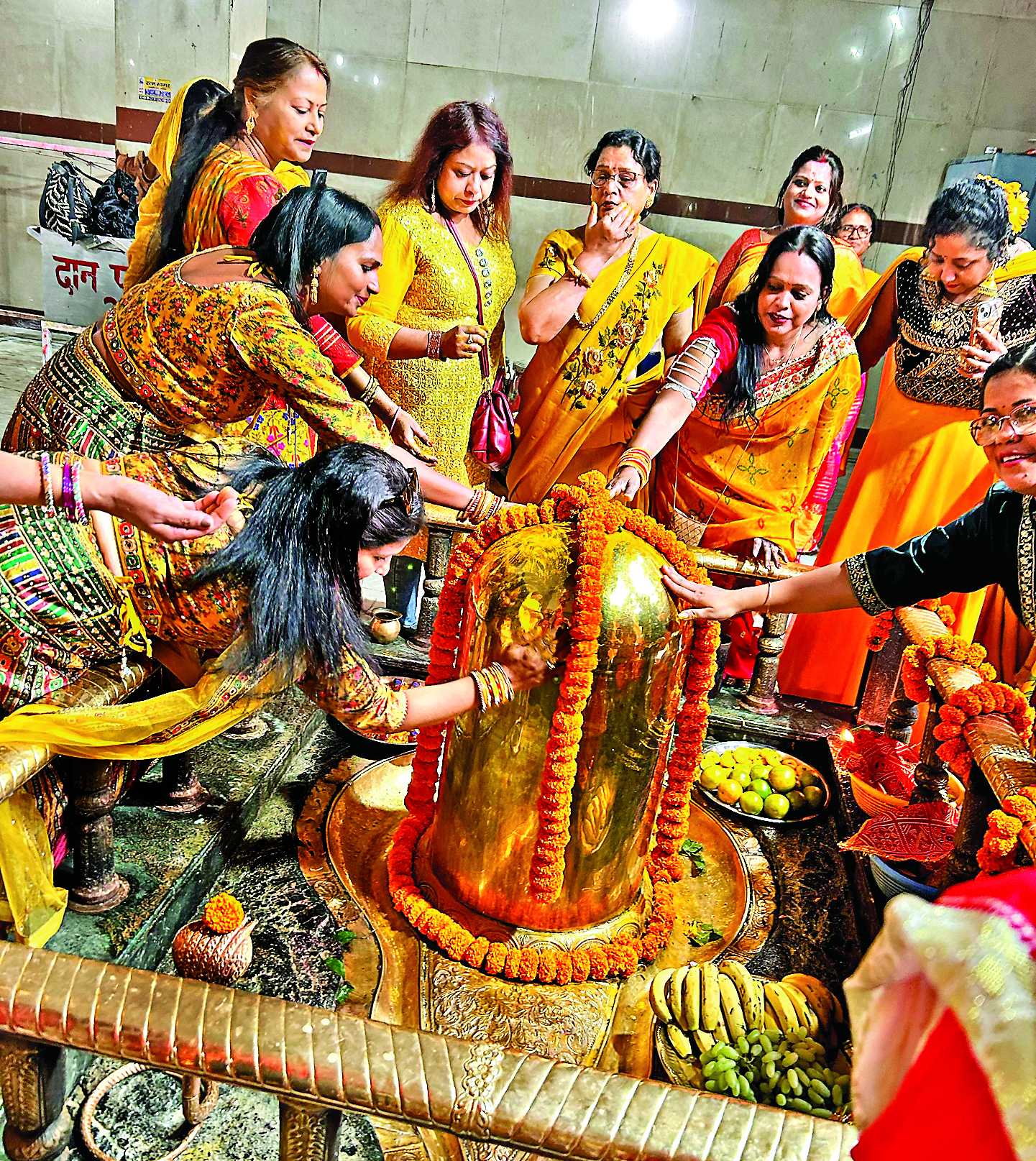 रांची. श्री शिव बारात आयोजन महासमिति पहाड़ी मंदिर द्वारा पहाड़ी मंदिर प्रांगण में बाबा के विवाह को लेकर शुक्रवार को हल्दी -मेहंदी रस्म का आयोजन किया गया. 151 श्रद्धालुओं ने पीले रंग के वस्त्रों में पूरे विधि-विधान के साथ हल्दी-मेहंदी चढ़ाया.सबसे पहले महाकाल को स्नान कराया गया व पूरे मंदिर की साफ-सफाई की गयी.उसके बाद हल्दी चढ़ायी गयी , फिर सभी महिलाओं ने सोहर गाया. बन्नो बन्ना आओ गीत पर सभी भक्त झूमने लगे.इस अवसर पर बाबा का शृंगार कर आरती की गयी.