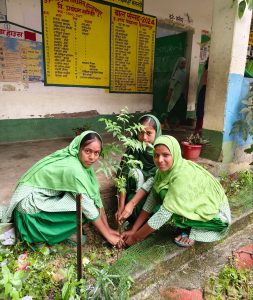 विद्यालय में पठन-पाठन के साथ पौधरोपण भी कर रहे हैं बच्चे