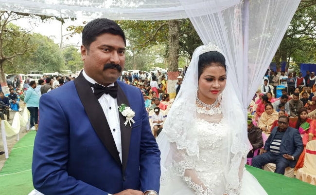 – महेशपुर प्रखंड के चांदपुर एनइएलसी चर्च में करायी गयी शादी की रस्म अदायगी