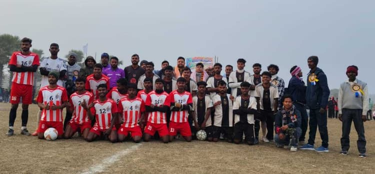 एनवाइएफसी गंगटिया कमेटी की ओर से तीन दिवसीय फुटबॉल टूर्नामेंट का आयोजन किया गया. अंतिम दिन सोमवार को टूर्नामेंट का प्रथम सेमीफाइनल एफसी हाटपाड़ा तालझारी बनाम एफसी रानी बगान बरहेट के बीच खेला गया, जहां दोनों टीमों ने बेहतर खेल का प्रदर्शन किया. खेल के अंत में पेनाल्टी सूट में एक गोल कर एफसी हाटपाड़ा तालझारी की टीम ने जीत हासिल कर फाइनल में प्रवेश किया. वहीं, दूसरा सेमीफाइनल मुर्मू ब्रदर्स हिसागुटू बनाम एफसी बादोलीगड के बीच खेला गया, जिसमें मुर्मू ब्रदर्स हिसागुटू की टीम ने 2-0 गोल से जीत हासिल कर फाइनल में जगह बनाई. टूर्नामेंट का फाइनल मुर्मू ब्रदर्स हिसागुटू बनाम एफसी हाटपाड़ा तालझारी के बीच खेल खेला गया, जिसमें मुर्मू ब्रदर्स हिसागुटू की टीम ने 1-0 गोल से जीत हासिल की. फाइनल के विजेता मुर्मू ब्रदर्स हिसागुटू टीम को मुख्य अतिथि आरएसएम के मैनेजर पप्पू पुरी ने एक लाख व कप देकर पुरस्कृत किया. वहीं उपविजेता एफसी हाटपाड़ा तालझारी को दुमका के एक्सलेंट हेंब्रम ने 80 हजार व कप देकर पुरस्कृत किया. वहीं सेमीफाइनल में हारने वाले दोनों टीमों को 20-20 हजार देकर सम्मानित किया गया. मौके पर कमेटी के अध्यक्ष बाबूलाल हेंब्रम, कोषाध्यक्ष मोहन हांसदा, फ्रांसिस हांसदा, सन्नी मरांडी, छोटे सोरेन व ग्राम प्रधान सहित लोग मौजूद थे.