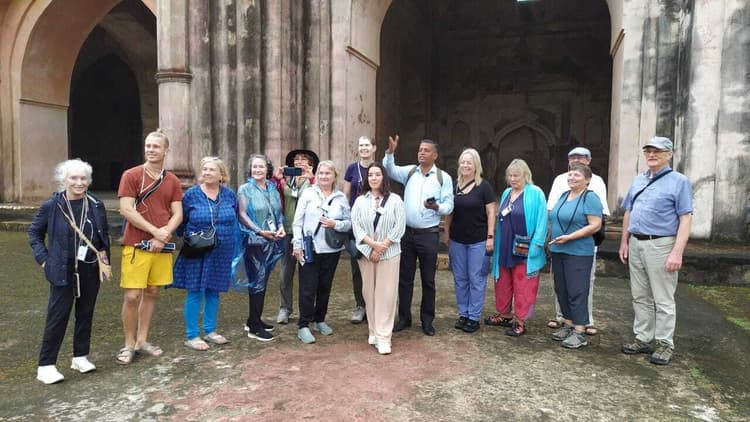 राजमहल/ मंगलहाट. असम बंगाली नेवीगेशन टूरिस्ट गाइड शुभंकर के नेतृत्व में गुरुवार की सुबह राजमहल प्रखंड अंतर्गत मंगलहाट स्थित ऐतिहासिक धरोहर जामा मस्जिद व बाराद्वारी का भ्रमण बूंदा-बांदी बारिशों के बीच भ्रमण किया गया. इस दौरान ऑस्ट्रेलिया एक, इंग्लैंड एक, फ्रांस के दो, स्विटजरलैंड के दो 2 यानी चार देशों के छह विदेशी पर्यटकों ने ऐतिहासिक मुगलकालीन कलाकृतियों की सराहना की. यहां के खूबसूरत दृश्यों को अपने कैमरे में कैद किया. टूरिस्ट गाइड ने जामा मस्जिद व बाराद्वारी के इतिहास की जानकारी सभी विदेशी पर्यटकों को दी और इसके महत्व को समझाया. टूरिस्ट गाइड ने बताया कि बनारस, पटना से गंगा के रास्ते कोलकाता जाने के दौरान राजमहल पहुंचे. राजमहल से टोटो में सवार होकर बाय रोड मंगलहाट स्थित ऐतिहासिक धरोहर का भ्रमण किया. यहां से भ्रमण करने के बाद सभी गंगा के रास्ते होते फरक्का, मुर्शिदाबाद, मायापुर जाने के लिए प्रस्थान हुए. वहीं गुरुवार की शाम लगभग 4:00 बजे टूरिस्ट गाइड विनय जायसवाल के नेतृत्व में तीन देशों के कल 25 विदेशी पर्यटक पहुंचे. कनाडा से 23, ऑस्ट्रोनीया से एक, इटली से एक कुल 25 विदेशी पर्यटकों ने ऐतिहासिक धरोहर जामी मस्जिद व बाराद्वारी का भ्रमण किया.