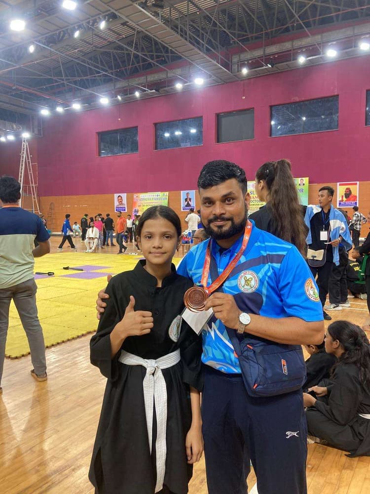 प्रतिनिधि, बरहेट. बरहेट प्रखंड के फुलभंगा गांव की बेटी जियाना परवीन ने गोवा में आयोजित 31वीं सब-जूनियर एवं सीनियर राष्ट्रीय थांग-टा मार्शल आर्ट प्रतियोगिता में शानदार प्रदर्शन करते हुए ब्रॉन्ज मेडल जीतकर जिले का नाम रोशन किया है. यह प्रतियोगिता 28 से 31 अक्तूबर तक मनोहर पार्रिकर इंदौर स्टेडियम, मडगांव (गोवा) में हुई थी. जियाना ने 29 किलोग्राम वर्ग में तीसरा स्थान हासिल किया. वह पहली बार राष्ट्रीय स्तर पर उतरी थीं और अपने उत्कृष्ट प्रदर्शन से सभी को प्रभावित किया. जियाना पीएम श्री केंद्रीय विद्यालय अररिया की कक्षा 8 की छात्रा हैं और अररिया जिला थांग-टा संघ की ओर से प्रतियोगिता में शामिल हुई थीं. उनकी सफलता पर परिवार और गांव में खुशी की लहर है. जियाना के पिता मो सैफ उर्फ लबली, माता नीलोफर परवीन, दादी सुल्ताना प्रवीन, चाचा प्रो नजरुल इस्लाम, नाहिद एवं युनुस आलम ने बेटी की सफलता पर हर्ष व्यक्त किया है. इस उपलब्धि के लिये बिहार थांग-टा संघ के महासचिव विकास कुमार झा, अररिया जिला संघ अध्यक्ष डॉ मुकेश कुमार सिन्हा, उपाध्यक्ष कन्हैया मिश्रा, जिला खेल पदाधिकारी सान्याल , प्रो डॉ नीतू कुमारी, डॉ अलका, कोच संतोष कुमार, राहुल कुमार, पप्पू कुमार ने भी जियाना को बधाई दी है. जियाना ने अपने प्रदर्शन से साबित किया कि साहिबगंज की बेटियां भी अब राष्ट्रीय स्तर पर अपनी पहचान बना रही हैं.