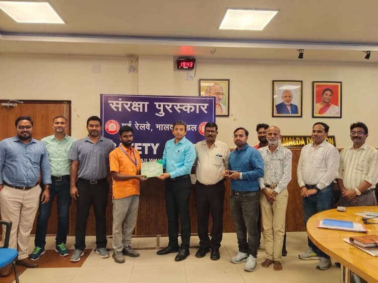 साहिबगंज. मालदा रेल मंडल के कल्याणचक रेलवे स्टेशन के पास बुधवार अहले सुबह बड़ी रेल दुर्घटना टल गयी. SSE/P.Way बरहरवा के ट्रैकमैन दिलीप कुमार ने नियमित निरीक्षण के दौरान देखा कि रेल पटरी से लगभग 25–30 पेंड्रॉल क्लिप गायब थीं, जो रेललाइन को मजबूती से जोड़ने का काम करती हैं. अगर समय पर यह जानकारी नहीं मिलती, तो किसी भी ट्रेन के गुजरने पर बड़ा हादसा हो सकता था. दिलीप कुमार ने तुरंत स्टेशन प्रबंधक को सूचना दी. सूचना मिलते ही रेल प्रशासन में हड़कंप मच गया. ऑफिसर इंचार्ज के नेतृत्व में तकनीकी टीम घटनास्थल पर पहुंचकर मरम्मत कार्य शुरू कर दिया. घटना की गंभीरता को देखते हुए डीएससी असीम कुल्लू अपनी पुलिस टीम के साथ जांच के लिए पहुंचे. मालदा मंडल प्रबंधक मनीष गुप्ता ने दिलीप कुमार की सतर्कता, निष्ठा और तत्परता की सराहना करते हुए उन्हें प्रशस्ति-पत्र और प्रोत्साहन पुरस्कार प्रदान किया.
