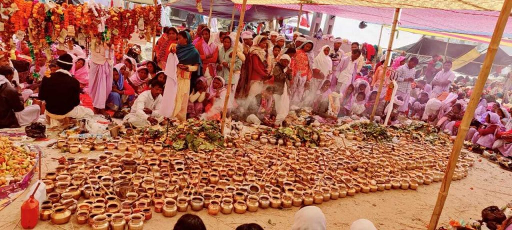 उत्तर वाहिनी गंगा तट पर सालों से लगने वाला माघी मेला कई मायनों में खास है. मेले में लगे गुरु बाबाओं का अखाड़ा अद्भुत नजारा प्रस्तुत करता है. यह मेला आदिवासी-गैरआदिवासी साझी संस्कृति का अद्भुत मिसाल भी है. गंगा स्नान व पूजा-अर्चना करने झारखंड के अलावा पश्चिम बंगाल, बिहार, ओडिशा व नेपाल से भी आदिवासी श्रद्धालु यहां पहुंचते हैं. इस वजह से माधी पूर्णिमा पर राजमहल में लगने वाले इस मेला को आदिवासियों का ””महाकुंभ”” भी कहा जाता है. इस आस्था के महाकुंभ में मंगलवार को आदिवासी साफाहोड़ श्रद्धालु अपने धर्म गुरुओं के साथ आस्था की डुबकी लगना शुरू कर दिये हैं. यह सिलसिला लगभग चार दिनों तक जारी रहेगा. पूर्णिमा के पहले, पूर्णिमा मुहूर्त एवं उसके बाद अपने-अपने धर्म गुरुओं के साथ अनुआई गंगा स्नान कर देंगे. वस्त्र में घंटों आराधना करने के उपरांत लोटा में जल लेकर अखाड़ा पहुंचते हैं.