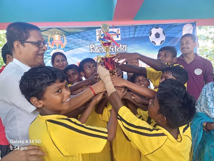 साहिबगंज.जिला स्तर पर फर्स्ट लिटिल चैंप्स फुटबॉल टूर्नामेंट 2025-26 का आयोजन बुधवार को सिदो-कान्हू स्टेडियम साहिबगंज में आयोजित किया गया. इसमें सभी प्रखंड से विजेता टीम शामिल हुए. जिलास्तरीय उक्त खेल प्रतियोगिता में अंडर-12 वर्ग की बालक/बालिकाओं ने भाग लिया. खेल का शुभारंभ जिला शिक्षा पदाधिकारी डॉ दुर्गानंद झा एवं जिला शिक्षा अधीक्षक कुमार हर्ष ने दीप प्रज्ज्वलित कर किया. प्रतियोगिता में उपस्थित बच्चों को खेल से संबंधित जानकारी डीईओ डॉ दुर्गानंद झा ने दी. डीएसई कुमार हर्ष ने बच्चों से खेल में बेहतर करने एवं खेल में भी अपना भविष्य संवारने के लिए शुभकामनाएं दी. जिलास्तरीय फर्स्ट लिटिल चैंप्स प्रतियोगिता के बालक वर्ग में राजमहल प्रखंड की टीम विजेता व बरहेट की टीम उपविजेता रही. वहीं बालिका वर्ग में भी राजमहल प्रखंड की टीम विजेता व बरहेट प्रखंड की टीम उपविजेता रही. बालक वर्ग में उधवा तीसरे व बालिका वर्ग में मंडरो तृतीय स्थान पर रही. प्रतियोगिता के दौरान जिले की एपीओ डॉली कुमारी, डीजीसी शबनम तबस्सुम, एमआईएस समन्वयक मनीष कुमार, बीपीओ एहसान अहमद, शारीरिक शिक्षा शिक्षक बीरेंद्र कुमार, आदित्य कुमार, सुनील किस्कू, संतोष गुप्ता, प्रियंका कुमारी एवं अन्य शिक्षक/कर्मी उपस्थित थे.