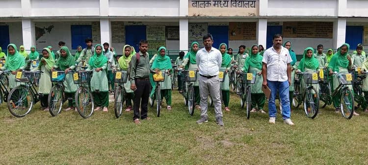 प्रतिनिधि, बरहरवा. झारखंड सरकार की योजना ‘उन्नति का पहिया’ के तहत बरहरवा नगर क्षेत्र के बालक मध्य विद्यालय प्रांगण में उत्क्रमित उच्च विद्यालय मिर्जापुर बंगला के 34 छात्र और 56 छात्राओं को साइकिल दी गई. शैक्षणिक सत्र 2025-2026 में प्रखंड के 3811 स्कूली बच्चों को साइकिल वितरित करने का लक्ष्य है. बीडब्ल्यूओ गौतम कुमार ने बताया कि वर्ग अष्टम के छात्र-छात्राओं को साइकिल दी जा रही है. अब तक 31 विद्यालयों के 651 बालकों और 668 बालिकाओं को कुल 1319 साइकिल दी जा चुकी हैं. शेष विद्यालयों में भी जल्द साइकिल वितरित की जाएंगी. मौके पर मोतीलाल मुर्मू, संतालाल यादव सहित अन्य मौजूद थे.