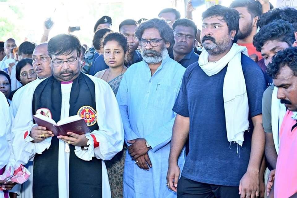 विजय हांसदा की पत्नी के अंतिम संस्कार में पहुंचे सीएम हेमंत सोरेन, पत्नी कल्पना और भाई बसंत सोरेन भी रहे मौजूद