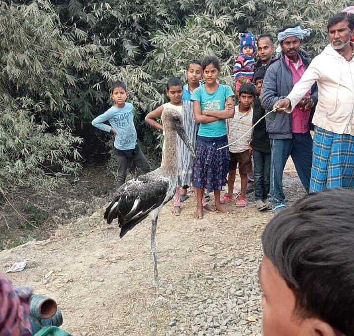 प्रतिनिधि, मंगलहाट राजमहल प्रखंड के मोकिमपुर पंचायत के शोभापुर गांव में मंगलवार की दोपहर दुर्लभ पक्षी, जिसे स्थानीय भाषा में “घोंघील ” कहा जाता है, पाया गया. इस पक्षी को देखने के लिए गांव के लोगों में भारी उत्सुकता देखी गई. घटना की सूचना वन विभाग तालझारी को दी गई, जिसके बाद वन कर्मियों ने मौके पर पहुंचकर इस पक्षी को सुरक्षित अपने कब्जे में लिया. वन रेंजर पंचम दुबे ने बताया कि इस पक्षी का वैज्ञानिक नाम ऐनास्टोमस ओस्किटैन्स है. इसे स्थानीय तौर पर “घोंघील ” और कई जगह “एशियाई चोंच खुला ” भी कहा जाता है. यह पक्षी राजबक परिवार की ऐनास्टोमस प्रजाति का हिस्सा है. इस पक्षी की खासियत इसकी चोंच है, जो बीच से खुली होती है. यह संरचना इसे घोंघा और अन्य जलचर जीवों को खाने में मदद करती है. रेंजर ने आगे बताया कि यह पक्षी फिलहाल बीमार है और इसे कुछ अंदरूनी चोटें भी लगी हैं. प्राथमिक उपचार के बाद इसका स्वास्थ्य बेहतर करने की कोशिश की जा रही है. सामान्यतः यह पक्षी गंगा नदी और अन्य जल स्रोतों वाले क्षेत्रों में पाया जाता है. यह दुर्लभ पक्षी न केवल जैव विविधता का हिस्सा है, बल्कि पर्यावरण संतुलन के लिए भी महत्वपूर्ण भूमिका निभाता है. इस तरह की घटनाएं वन्यजीव संरक्षण के महत्व को दर्शाती हैं और हमें इनके संरक्षण के प्रति जागरूक बनाती हैं.