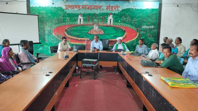 प्रतिनिधि, मंडरोमंडरो प्रखंड सभागार में प्रखंड क्षेत्र के सभी ग्राम प्रधानों के साथ बीडीओ सह सीओ मेघनाथ उरांव की अध्यक्षता में लगान रसीद से संबंधित एक आवश्यक बैठक की गयी. बैठक में उपस्थित ग्राम प्रधानों से लगान रसीद से संबंधित जानकारी ली गयी. साथ ही राजस्व वसूली को लेकर भी विस्तृत चर्चा की गयी. वहीं ग्राम प्रधान प्रखंड अध्यक्ष बाबूलाल हांसदा ने बताया कि संथाल परगना जस्टिस रेगुलेशन के तहत बनाये गये कानून को लेकर चर्चा की गयी. जिस प्रकार हमलोग अपने-अपने ग्राम में लोगों की पंचायती व छोटे-मोटे बाद-विवाद को आपसी समझौता कर निपटाते हैं, इन सभी मामलों को लेकर चर्चा की गयी है. इन सब मुद्दों पर विस्तृत चर्चा करते हुए सभी ग्राम प्रधान अपनी बात को आगे वरीय पदाधिकारी के पास रखेंगे. इस अवसर पर प्रभारी अंचल निरीक्षक मोहम्मद फारूक, ग्राम प्रधान लच्छु मुर्मू, बाबू लाला हांसदा, मरंग मरांडी, नेपाली कुमार राय, जुलू किस्कू, चांदू पहाड़िया, सुनील बास्की, ठाकुर सोरेन, सूना बेसरा, मरांग मरांडी सहित कई ग्राम प्रधान उपस्थित थे.