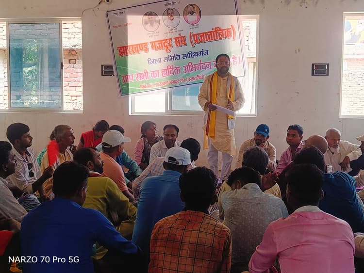 साहिबगंज. झारखंड मजदूर संघ (प्रजातांत्रिक) द्वारा जिला स्तरीय संगठनात्मक मजबूती हेतु संघ के जिला अध्यक्ष मिथुन यादव की अध्यक्षता में बुधवार को शहर के मछुआ सोसायटी के सभागार में बैठक हुई. इसमें संघ के केंद्रीय महामंत्री राजकुमार यादव द्वारा राज्य के मजदूरों की समस्या कम वेतन, असुरक्षित कार्यस्थल, समाज में सुरक्षा की कमी तथा न्यूनतम मजदूरी आदि पर चर्चा करते हुए मजदूरों के स्वास्थ्य लाभ प्राप्त करने वाले अस्पताल और उनके बच्चों के लिए शिक्षा लाभ प्राप्ति वाले विद्यालय की बदहाल व्यवस्था व शिक्षकों की कमी की भी भर्त्सना की गयी. आदम जन जाति व पहाड़िया समाज के दयनीय व दिशाहीन स्थिति पर भी संवेदना व्यक्त करते हुए सदस्यों को उक्त समाज में जागरूकता लाने पर काम करने को लेकर प्रोत्साहित किया गया. महामंत्री द्वारा 25 सदस्यों वाली जिला स्तरीय व प्रखंड स्तरीय चयनित पदाधिकारियों को नियुक्ति पत्र सौंपा गया. फिर जिले के सभी प्रखंडों में बैठक 17 से 25 मई तक लगातार रखते हुए प्रखंड स्तरीय बैठक की कार्यवाही को पूरा किया जाएगा. इसका आगाज राजमहल प्रखंड से होगी. आदम जनजाति पहाड़िया समाज से बेंजामिन मालतो के साथ-साथ आज की बैठक में सुरजा, जसवा, लक्ष्मण, मसी आदि कई लोगों ने संघ में योगदान देने का संकल्प लिया. इस बैठक में केंद्रीय उपाध्यक्ष फूल कुमारी देवी के साथ-साथ जिला कार्यकारी अध्यक्ष दाम बसु, उपाध्यक्ष मनोज सोरेन, विपिन कुमार पंकज, शिवलाल ठाकुर, जिला महामंत्री मो इमाम विश्वास, संयुक्त मंत्री मो राजा मुराद, सहायक मंत्री मिथुन राजवंशी, मोनिका देवी, पौलुस गुरु जी टुडू, कार्यालय मंत्री मोहम्मद जावेद अख्तर, कोषाध्यक्ष सुनील गुप्ता, संगठन मंत्री बिरबल मंडल, सदस्य वर्णावास मरांडी, परवेज अंसारी, पंकज ठाकुर, अजिमुद्दीन नादाव, ममता पासवान, लपसा हांसदा, मोकर्म शेख, मीना साहा, उदय कुमार मंडल, दिब्या हांसदा, शकुंतला दास, निखिल यादव आदि जिला कमेटी के सदस्य उपस्थित थे.