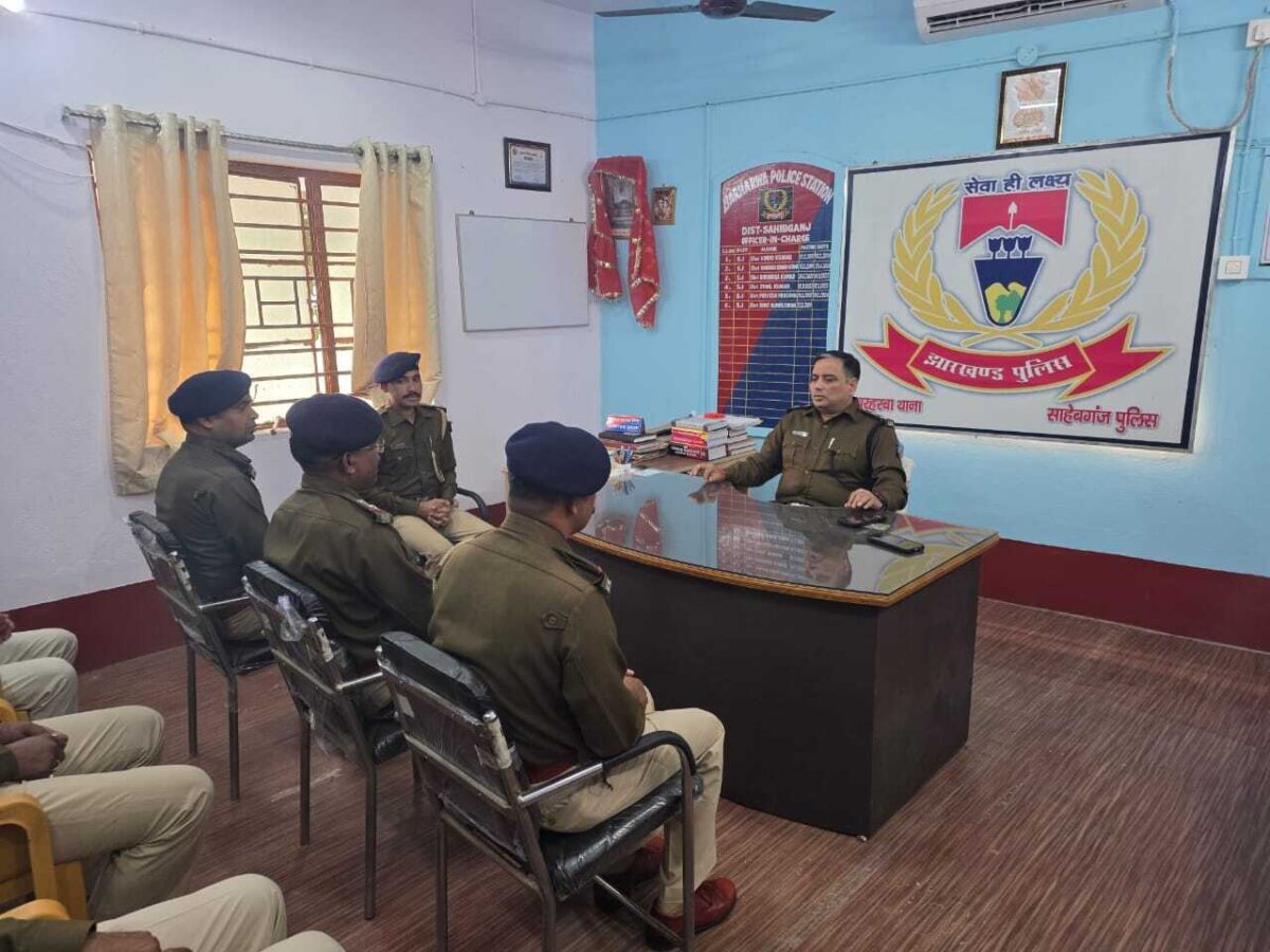 बरहरवा. पुलिस अधीक्षक अमित कुमार सिंह ने सोमवार को बरहरवा थाना का निरीक्षण किया. इस दौरान थाना में पुलिस पदाधिकारियों के साथ विधि व्यवस्था संधारण को लेकर बैठक की. एसपी ने निर्देश दिया कि पश्चिम बंगाल के सीमावर्ती इलाके में पूरी तरीके से मुस्तैद रहें. रात्रि गश्ती नियमित हो, अपराधी प्रवृत्ति के लोगों पर कड़ी नजर रखें, पुराने वारंटियों को गिरफ्तार कर जेल भेजें. जितने भी थाना में लंबित मामले हैं, उसका जल्द निष्पादन करें. एसपी ने सभी पुलिस पदाधिकारियों को कहा कि हमारा लक्ष्य जिला को अपराधमुक्त बनाना है. अभियान में आप पुलिस पदाधिकारी की भूमिका सबसे अहम है. मौके पर बरहरवा इंस्पेक्टर संतोष कुमार राणा, थाना प्रभारी सुमित कुमार सिंह सहित अन्य पुलिस पदाधिकारी व जवान मौजूद थे.