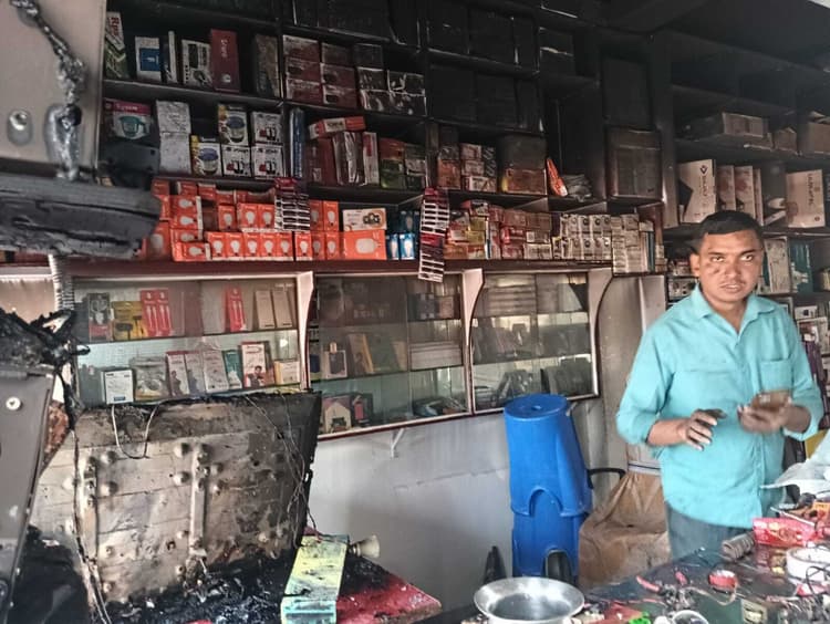 प्रतिनिधि, मंडरो मिर्जाचौकी के चैती दुर्गा मंदिर के पास स्थित चंदन इलेक्ट्रॉनिक्स की दुकान में मंगलवार दोपहर करीब एक बजे अचानक आग लग गयी. बताया जा रहा है कि, आग लगने का कारण बिजली का शॉर्ट सर्किट था. दुकान के बाहर काम कर रहे अन्य मिस्त्रियों ने जब दुकान के अंदर से धुआं निकलते देखा, तो उन्होंने तुरंत इसकी सूचना दुकान मालिक चंदन कुमार महतो को दी. सूचना मिलते ही चंदन कुमार महतो मौके पर पहुंचे और दुकान का शटर खोलकर आग बुझाने का प्रयास किया. उन्होंने बताया कि मंगलवार को खेती-बाड़ी के काम के कारण दुकान बंद थी, लेकिन दोपहर में सूचना मिली कि दुकान से धुआं निकल रहा है. जब उन्होंने दुकान का शटर खोला, तो अंदर आग लगी हुई थी, जिसमें टीवी, इन्वर्टर, बैटरी समेत लाखों रुपये का सामान जलकर राख हो गया. इसके बाद तुरंत मिर्जाचौकी थाना पुलिस को घटना की जानकारी दी गयी. सूचना पाकर मिर्जाचौकी थाना पुलिस घटनास्थल पर पहुंची और मामले की जांच शुरू की. दुकान में आग से हुए भारी नुकसान के कारण चंदन कुमार महतो और उनके भाई गौतम कुमार महतो बेहद मायूस नजर आये. दुकान के सामान के जलने से दोनों भाइयों की आंखों में आंसू छलक आये.