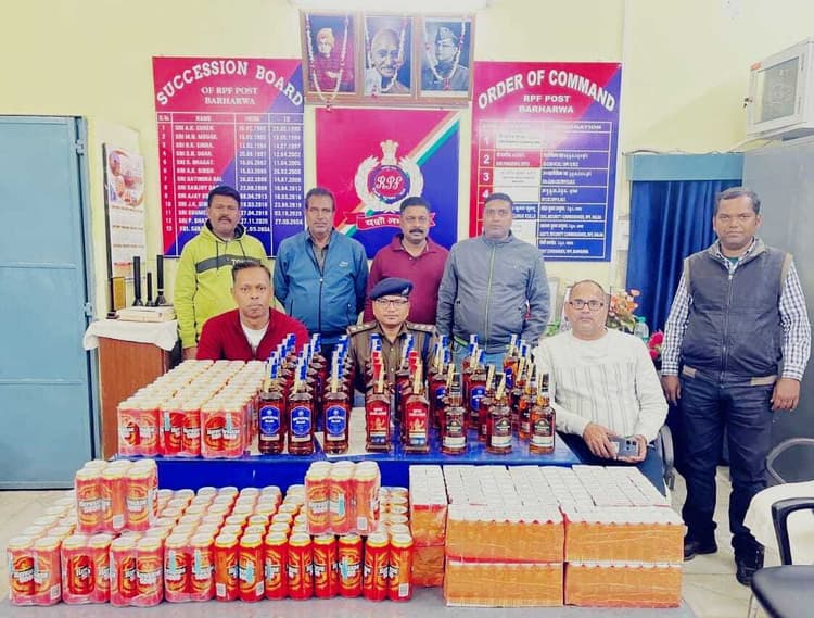 प्रतिनिधि, बरहरवा मालदा रेल मंडल के अंतर्गत बरहरवा रेलवे स्टेशन पर शनिवार रात आरपीएफ ने फरक्का एक्सप्रेस ट्रेन में छापेमारी कर भारी मात्रा में विदेशी शराब बरामद की. मिली जानकारी के अनुसार, गुप्त सूचना के आधार पर बरहरवा आरपीएफ इंस्पेक्टर संजीव कुमार और सीआईबी इंस्पेक्टर मृत्युंजय कुमार सिंह के नेतृत्व में एक टीम का गठन किया गया. टीम ने अप फरक्का एक्सप्रेस (15733) के स्लीपर कोच एस-2 और एस-3 में छापेमारी की, जिसमें अलग-अलग बर्थ के नीचे करीब 10 संदिग्ध प्लास्टिक के बोरे मिले.