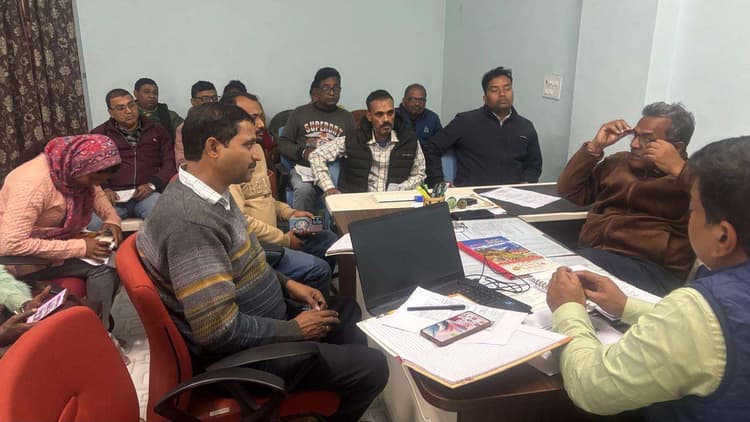 तालझारी. प्रखंड कार्यालय में शुक्रवार को सीओ-सह-बीडीओ राम सुमन प्रसाद की अध्यक्षता में मनरेगा की समीक्षा बैठक हुई. बैठक में निर्देश दिया गया कि सक्रिय श्रमिकों का केवाइसी समय सीमा समाप्त हो चुका है. इसलिए 5 से 12 दिसंबर तक पंचायतवार अभियान चलाकर छूटे मजदूरों का इ-केवाइसी पूरा किया जाए. जिन पंचायतों में मानव दिवस सृजन कम है, वहां एक सप्ताह के भीतर शत-प्रतिशत लक्ष्य हासिल करने को कहा गया. मुख्यमंत्री पशुधन विकास योजना की 52 में से 20 योजनाओं में कार्य शुरू हो चुका है, शेष योजनाओं को जल्द शुरू कर पूर्ण करने का निर्देश दिया गया. पूर्व में आवंटित फंड-मैटेरियल राशि दो दिन के भीतर व्यय करने को कहा गया. बैठक में बीपीओ, जेइ, रोजगार सेवक और अन्य कर्मी उपस्थित थे.