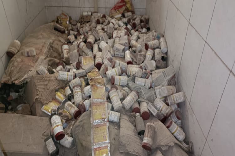 निर्माणाधीन भवन में रखा हुई है एक्सपायरी पड़ा दवाईयां