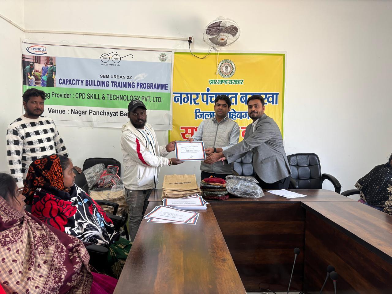 प्रतिनिधि, बरहरवा नगर पंचायत सभागार कक्ष में गुरुवार को स्वच्छ भारत अभियान के तहत नप के सफाईकर्मियों को प्रशिक्षित करने के लिए आयोजित क्षमता संवर्धन उन्मुखी कार्यक्रम का समापन किया गया. इसमें कार्यपालक पदाधिकारी दीपक कुमार, स्किल एंड टेक्नोलॉजी प्राइवेट लिमिटेड के निर्देशक चंदन पांडे व मास्टर ट्रेनर सुजीत गिरी मौजूद थे. इस दौरान प्रशिक्षण में शामिल होनेवाले नगर पंचायत क्षेत्र के सभी सफाईकर्मियों को प्रमाण-पत्र दिया गया. कार्यपालक पदाधिकारी दीपक कुमार ने बताया कि इसके माध्यम से नगर कर्मियों को नगर क्षेत्र में नियमित साफ-सफाई, सफाई के दौरान सुरक्षा उपायों पर ध्यान देने, गिला तथा सूखे कचरे को अलग-अलग इकट्ठा करने, प्लास्टिक पुनर्चक्रण आदि के बारे में बताया गया था. नपं सफाईकर्मियों के प्रशिक्षित होने से निश्चत रूप से इसका लाभ आनेवाले दिनों में नगर पंचायत क्षेत्र में देखा जायेगा. मौके पर नगर प्रबंधक महफूज आलम, जयनाथ सिंह, अमर कुशवाहा आदि मौजूद थे.